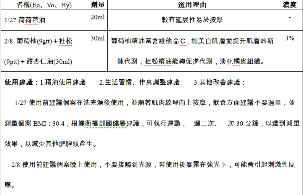 「肥胖紋」,我自己的感受也很深,自己也是受害者,但當初還沒接觸芳療這個領域,所以顯在已經變成白色的,只能透過精油加強拉提、緊實,很開心自己所學可以幫助他人,期許且希望能夠更加進步!
