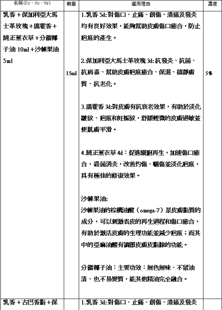 原本擔心無個案可以寫,結果,侄子就自摔了,傷口很大,四肢都有擦傷,以左手肘比較嚴重,長約 12公分,第一天先用乳香 +玫瑰 +薰衣草 +廣霍香,剛噴上去時,他有感受到刺痛感,大約十分鐘後,有舒緩了,我先請他早、中、晚、睡前各用一次,第三天去上完皮膚系統後,幫他在加入古巴香脂+西洋蓍草後,他說古巴香脂有明顯痲醉效果,多加這兩隻後,感覺到皮膚都沒有疼痛感了!! 每天觀察他皮膚的狀況,因為他受傷後,問我可以回佳里的我家住嗎?我當然說好,方便照顧他,畢竟,這小孩現在正是需要人照顧的時候,他一人住在台南永康區上班,四肢都受傷,不方便出門買飯吃,住在我家裡後,我直接問他,你要使用精油,直接噴傷口嗎?他回答:好!!但我還是讓他,先跟他媽媽說一下,傷口要用精油來幫助修復它,結果我妹告訴我,你千萬不要 po在 f b,讓別人知道他受傷的事,怕他先生知道後,生氣他又騎車自摔了!我回:給我做高階精油個案報告就好,我就感激不盡了! 選擇用沙棘果油跟玫瑰果油在加分餾椰子油做調和油,因為我自己的感覺純沙棘果油跟玫瑰果油,對我而言,還是偏油,但他因為是抺在手上傷口比較沒有什麼感覺到不同的地方。 這十天,每天觀察他傷口的變化,有感受到傷口收斂,紅腫發炎症狀的減少,傷口周圍由外往內縮小範圍,十天過程從由原本 12公分變成 5公分的差異,他媽媽也每天下班後,帶著自製便當來看他傷口恢復的狀況,越來越好時,就不再擔心,要休息到一個月才能去上班了!
