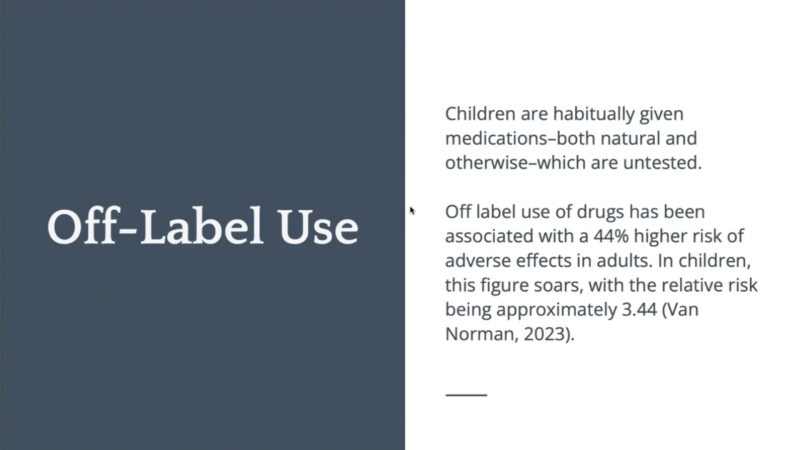 兒童經常被給予不論天然或藥物性、但未經驗證的產品。成人使用藥物 off-label 的不良反應風險增加 44%,但在兒童中相對風險高達 3.44 倍。由於缺乏三期試驗,許多使用情境完全沒有安全資料支持,使兒童形同在無數未監測的情境下成為「人體實驗」。這凸顯建立兒童實證芳療數據的重要性。
