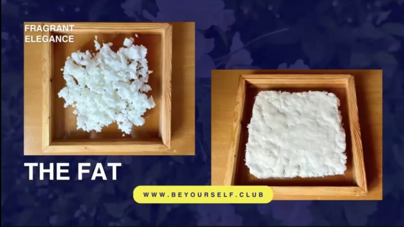 • 她示範了兩種脂肪形態(鬆散狀 & 平整壓實狀)。