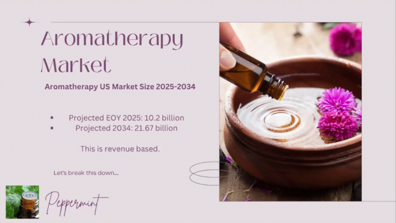 「2025 年美國芳療市場規模預估為 102 億美元」,「2034 年預估將成長至 216.7 億美元」, 十年內市場幾乎翻倍。 市場正在「意識轉移」,芳療已成為更被主流接受的保健方式。