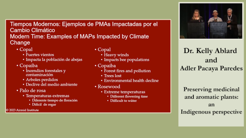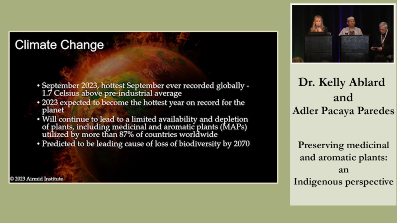在全球暖化的現況,地球平均溫度已比前工業時代高出 1.75°C,而科學界認為今年可能是史上最熱的一年。氣候變遷正使植物數量急速下降,包括全球 87% 的國家所使用的藥用與芳香植物,都面臨減少、生長異常或消失的危機。她強調,這些變化不是遙遠的未來,而是正在發生的事實,且可能在 2070 年使生物多樣性大幅崩壞。她也指出,極端乾旱、森林火災與害蟲增加,使植物無法自我保護,造成大量死亡,包含許多芳療領域重要的植物原料。