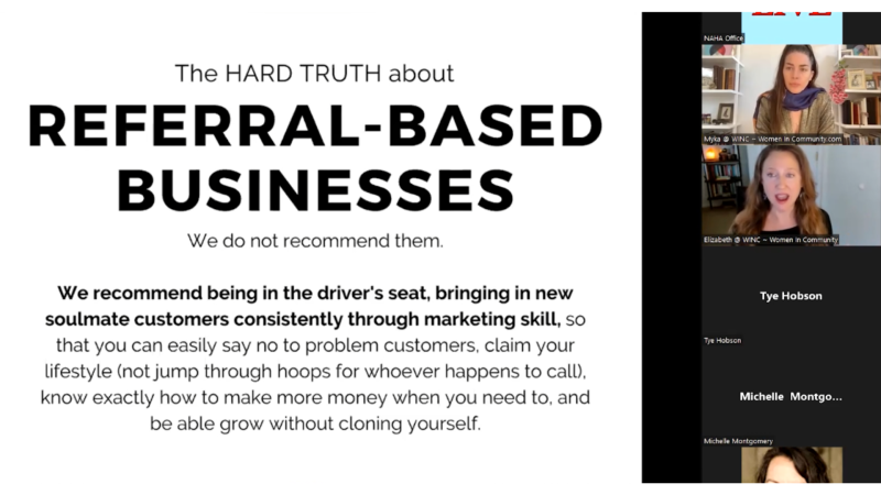 最後她談到線上世界有各式各樣的行銷方式,尤其是社群媒體,看似有利於擴張事業,但對還在起步階段的人來說,常常反而是分心與消耗。當妳的訊息與定位還不清楚時,就像一條小魚丟進巨大池塘,很難真正被看見。她鼓勵大家把重心放在「關係型行銷」,在較親密的情境中與受眾深度互動,而不是只在擁擠的社群場域裡不斷嘗試與修正,這樣更有助於穩定成長並走向六位數收入。