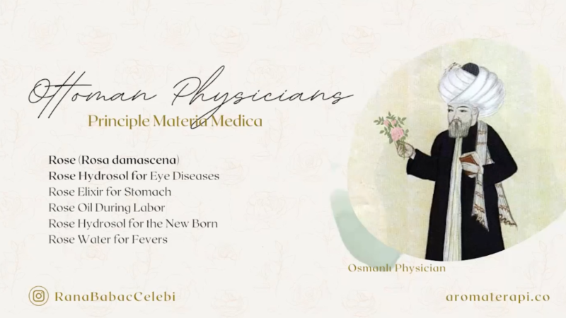 奧斯曼醫師如何大量運用大馬士革玫瑰(Rosa damascena)。玫瑰純露被建議用來照護眼疾,玫瑰煉製的靈露與油則用於胃部不適、助產與減輕陣痛;婦女生產時會以玫瑰油按摩腰腹與腿部。新生兒出生後,也會用溫和的玫瑰純露為其洗浴,並在發燒時以玫瑰水協助降溫。由於保加利亞玫瑰園當時屬於帝國版圖,宮廷可取得最頂級的玫瑰原料,然而價格十分昂貴,一般民眾難以享用,顯示玫瑰在宮廷醫學與文化中的重要地位。