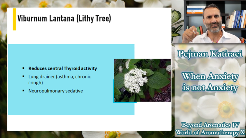 在介紹 Lithy tree(莢蒾屬植物)時,他說自己常用約 90~95% 的甲狀腺與腎上腺支持配方,再加上一點點具鎮靜效果的植物,如無花果或 Lithy tree,來微調系統。Lithy tree 可降低中樞甲狀腺活性、幫助肺部與慢性咳嗽,同時具有神經與呼吸系統的鎮靜作用。用意不是把系統「關掉」,而是在把「小車」升級成「超跑」的同時,也溫柔地告訴司機不用再猛踩油門,讓整體運作更平順放鬆。