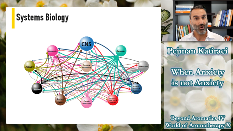 系統生物學圖像中,他說人類身體是一個高度互相連結的系統:呼吸道、結構、毒素與解毒、慢性感染、代謝、荷爾蒙、營養素、基因、感覺處理等,彼此以複雜網絡影響中樞神經系統。任何一處失衡,都可能間接造成腦部功能失常,而腦的失衡最後就以焦慮、情緒波動或行為問題呈現。